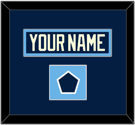 Pittsburgh 2011 Winter Classic Blue Jersey Nameplate With Game Logo Patch. Single Mat Cut: Blue Mat With Blue Nameplate & Patch Mounted On A Powder Blue Mat. White Or Black Frame.