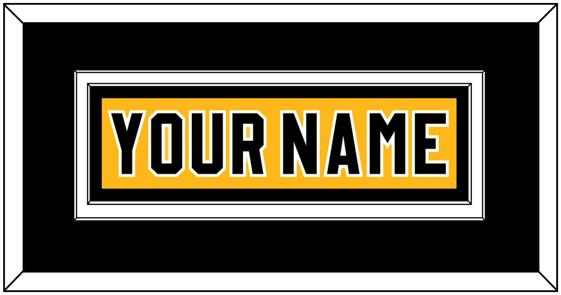 Pittsburgh Alternate Gold Jersey (1980 Through 1981) Nameplate.  Black Mat Over A White Mat, Gold Nameplate Mounted On Black Mat.  White Frame.