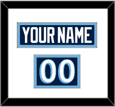Pittsburgh Alternate Blue Jersey (2011 Through 2013) Nameplate & Numbers From Shoulder - The Nameplate Is Single Mat Cut:  Blue Nameplate Mounted On Powder Blue Mat.  To Match The Jersey, The Numbers Are Double Mat Cut: White Mat Over A Powder Blue Mat, White Numbers Mounted On A Blue Mat.  Black Frame.