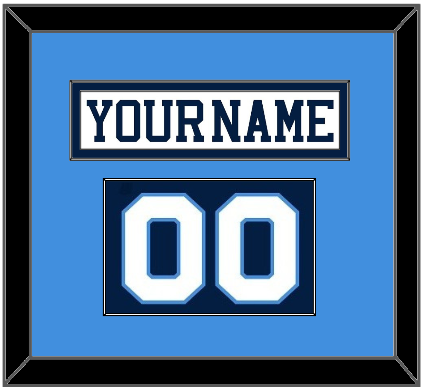 Pittsburgh Home White Jersey (1977 Through 1980) Nameplate & Numbers From Shoulder - Powder Blue Mat With The White Nameplate & Numbers Mounted On A  Blue Mat.  White Or Black Frame.