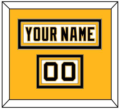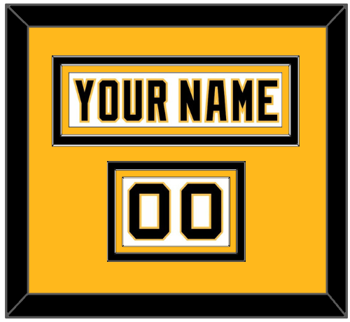 Pittsburgh Home White Jersey (1992 Through 2002) Nameplate & Numbers From Shoulder - The Nameplate Is Double Mat Cut: Gold Mat Over A Black Mat. White Nameplate Mounted On A Gold Mat. To Match The Jersey, The Numbers Are Double Mat Cut: Gold Mat Over A Black Mat, Over A Gold Mat. Black Numbers Mounted On A White Mat. Black Or White Frame.