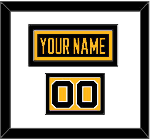 Pittsburgh Road Black Jersey (1988 Through 1992) Nameplate & Numbers From Shoulder - White Mat Over Black Mat With The Black Nameplate & Black Numbers Mounted On Gold Mat. Black Frame.