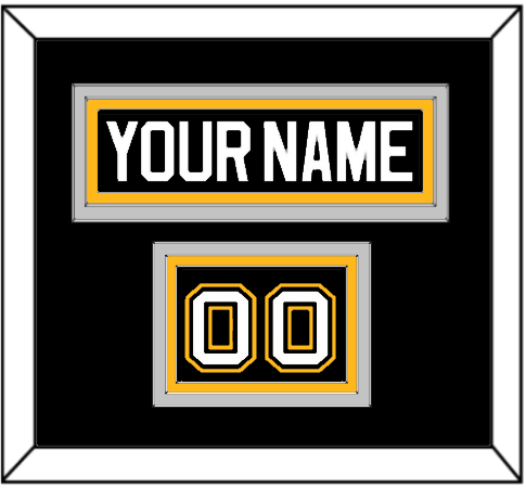 Pittsburgh Road/Alternate Black Jersey (1995 Through 2002) Nameplate & Numbers From Shoulder - The Nameplate Is Double Mat Cut: Black Mat Over A Light Gray Mat. Black Nameplate Mounted On Gold Mat. To Match The Jersey, The Numbers Are Double Mat Cut: Black Mat Over A Light Gray Mat, Over A Gold Mat. White Numbers Mounted On A Black Mat. White Frame.