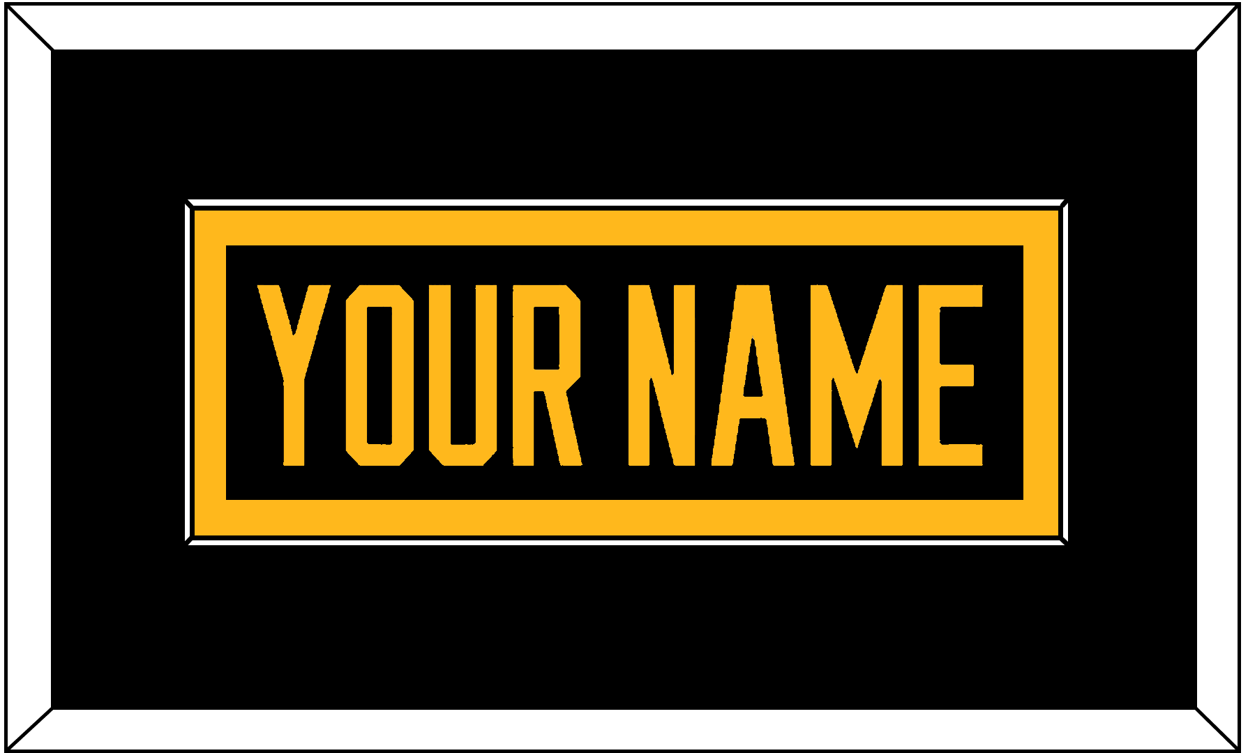 Pittsburgh Black Jersey (1988 Through 1992) Nameplate.  Single Mat:  Black Mat, Black Nameplate Mounted On Gold Mat.  White Frame.