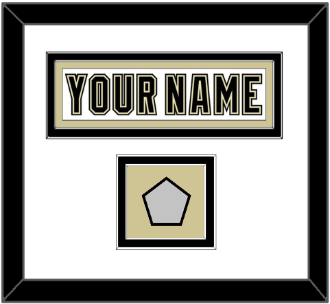 Pittsburgh Road White Jersey (2007 Through 2016) Nameplate With 1991, 1992, 2009, 2016 Or 2017 Stanley Cup Champions Patch.  Double Mat Cut:  White Mat Over A Black Mat With White Nameplate & Patch Mounted On A Gold Mat.  Black Frame.