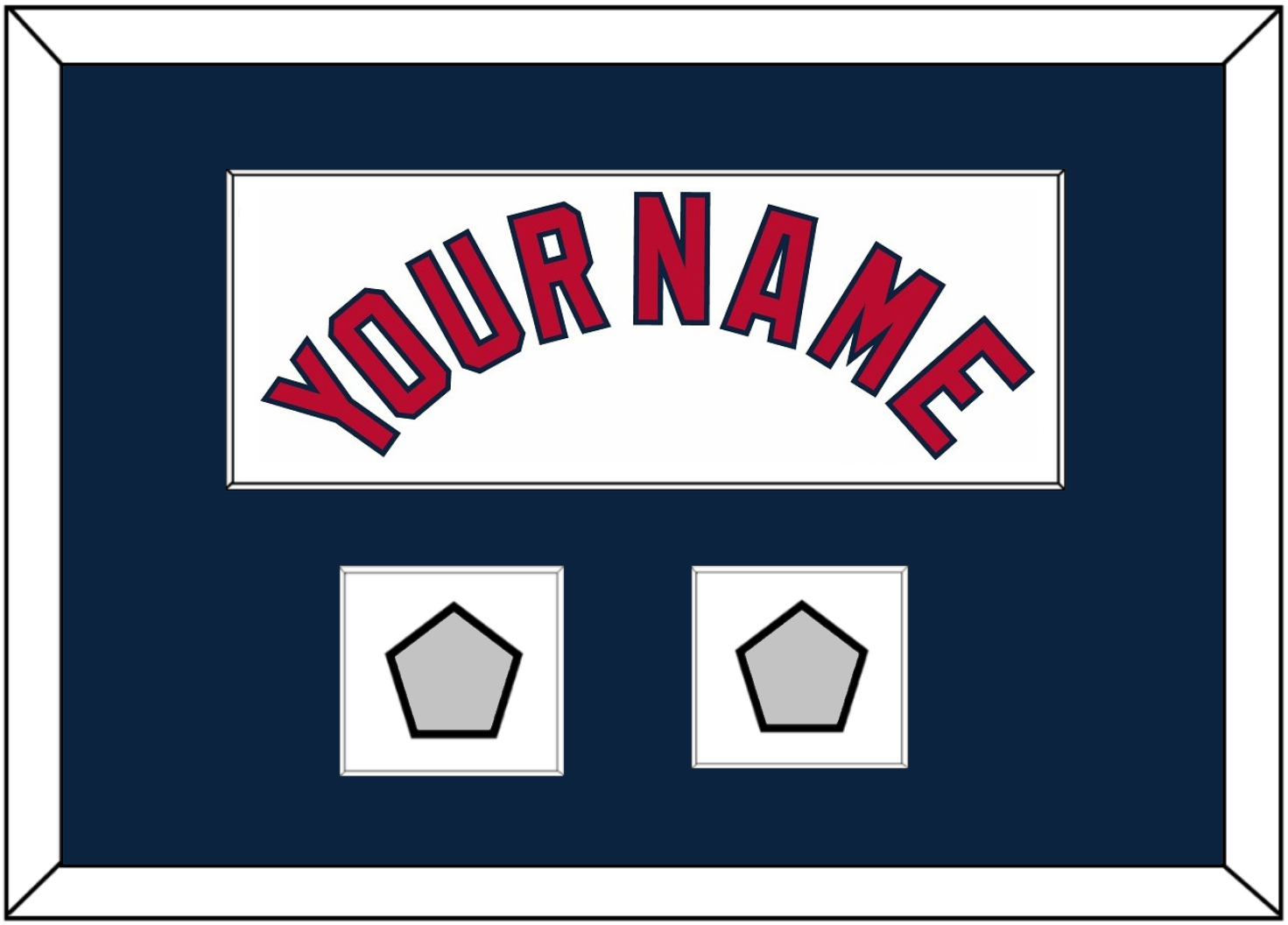 St. Louis Home White Jersey (2006 Through 2012) Name With 2006 & 2011 World Series Champions Patches. Single Mat: Blue Mat With Red Name & Patches Mounted On White Mat. White Or Black Frame.