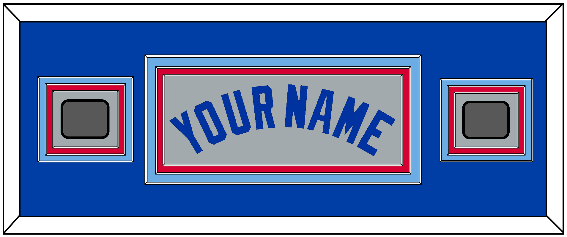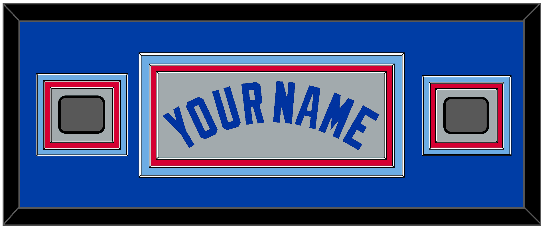 Toronto Road Gray Jersey (1989 Through 1996) Name With 1992 & 1993 World Series Patches. Triple Mat: Blue Mat Over A Light Blue Mat Over A Red Mat. Blue Name & Patches Mounted On A Gray Mat. White Or Black Frame.