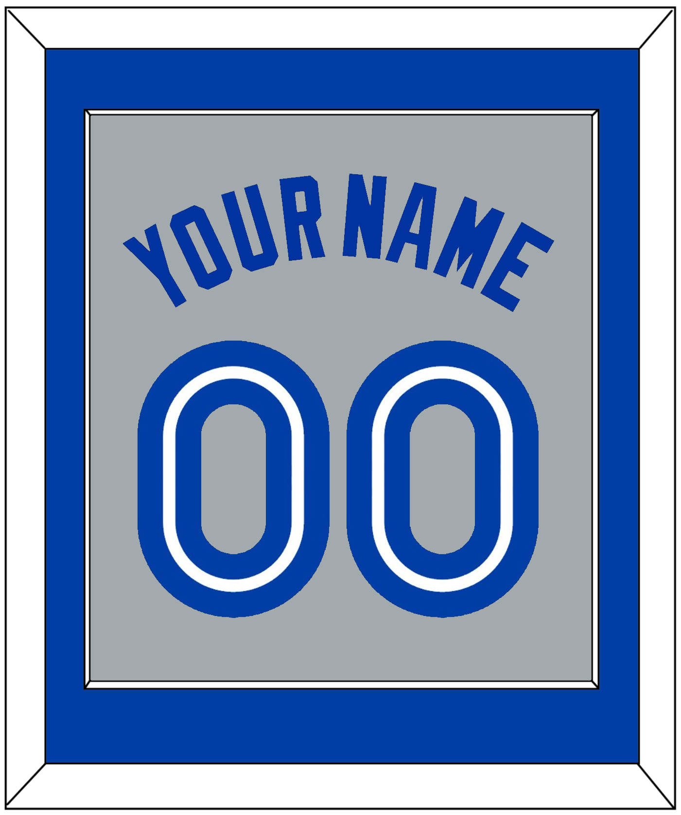Toronto Road Gray Jersey (1989 Through 1996) Name & Number. Single Mat: Blue Mat With Blue Name And Number Mounted On A Gray Mat. White Or Black Frame.