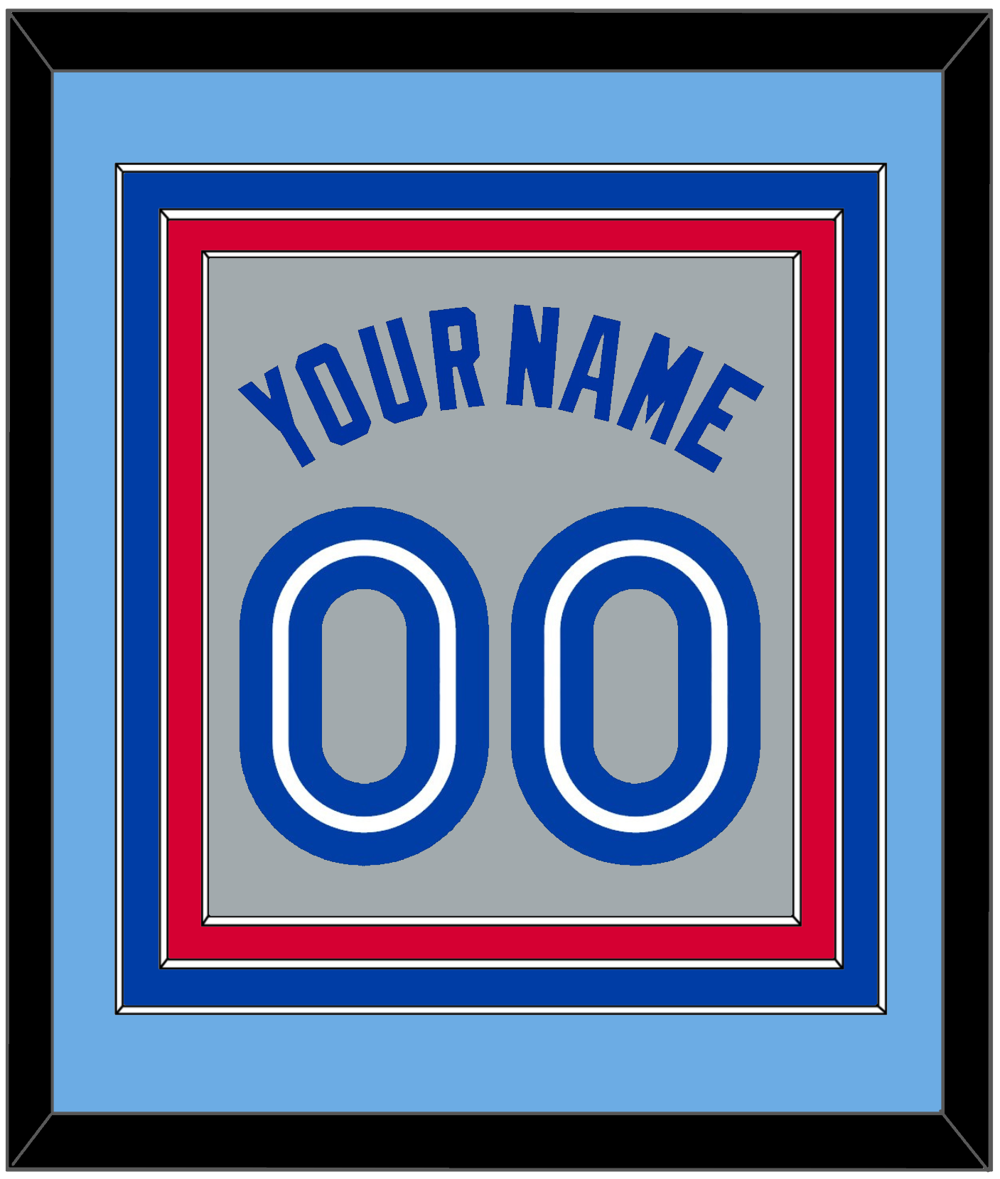 Toronto Road Gray Jersey (1989 Through 1996) Name & Number. Triple Mat: Light Blue Mat Over A Blue Mat Over A Red Mat. Blue Name And Number Mounted On A Gray Mat. White Or Black Frame.