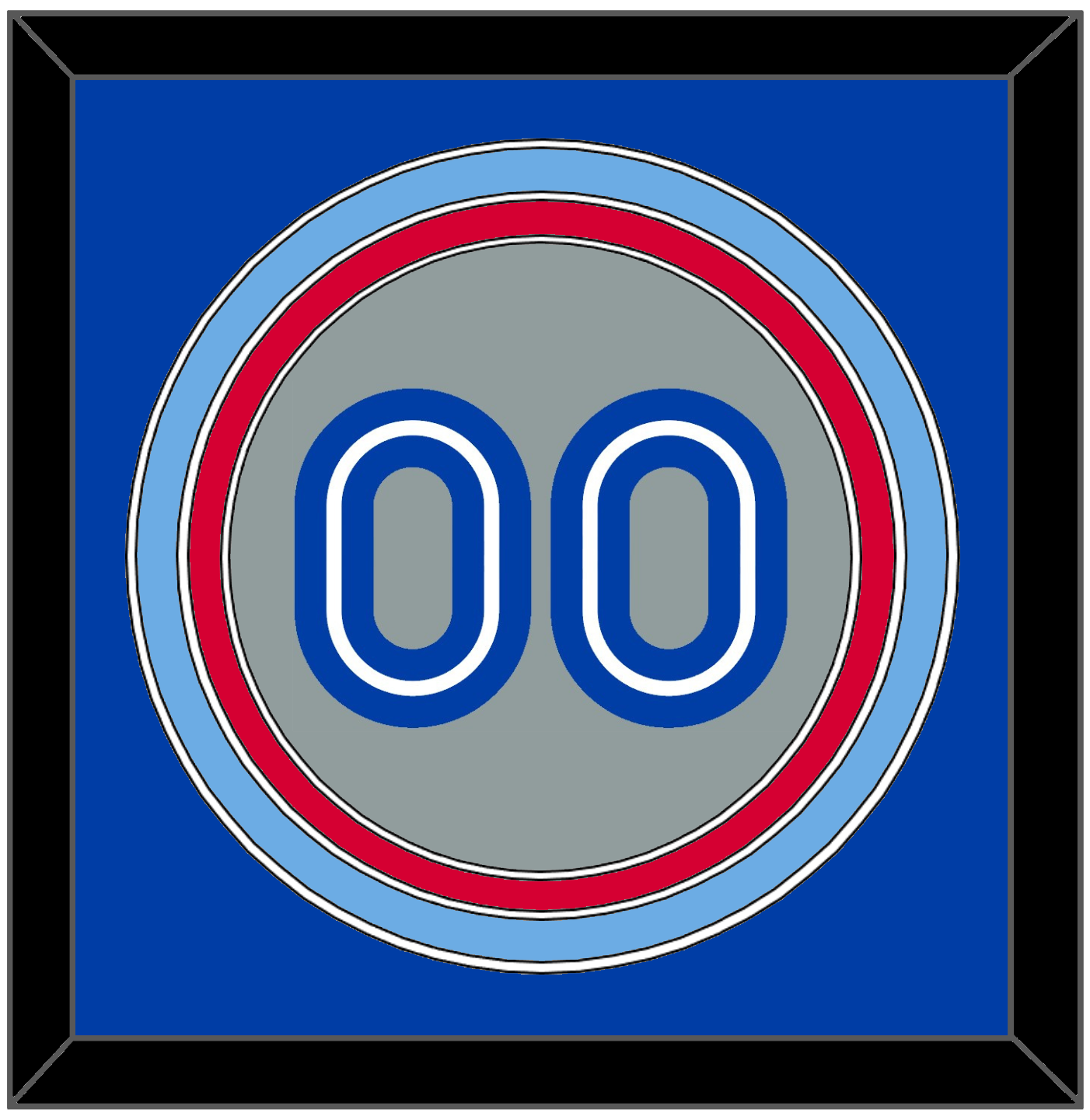 Toronto Road Gray Jersey (1989 Through 1996) Number.  Triple Mat:  Blue Mat Over A Light Blue Mat Over A Red Mat.  Blue Number Mounted On A Gray Mat.  White Or Black Frame.