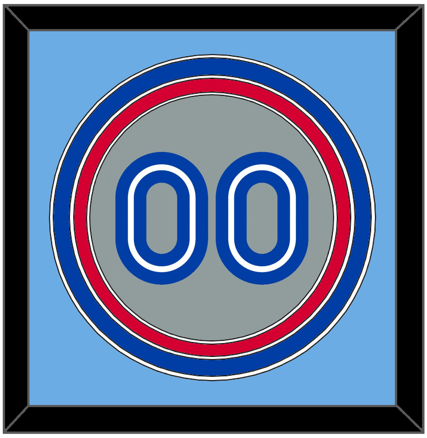 Toronto Road Gray Jersey (1989 Through 1996) Number.  Triple Mat:  Light Blue Mat Over A Blue Mat Over A Red Mat.  Blue Number Mounted On A Gray Mat.  White Or Black Frame.