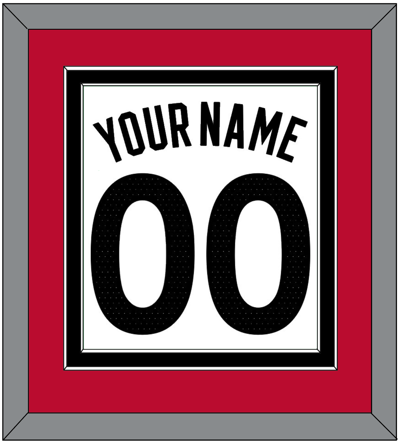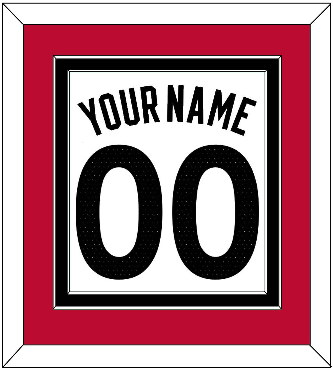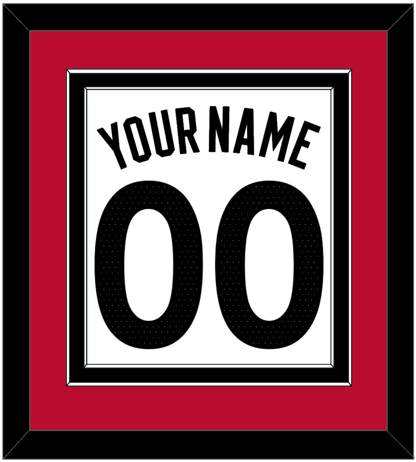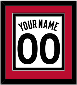 Toronto White Association Jersey (2015 Through 2020) Name & Number. Double Mat: Red Mat Over A Black Mat. Black Name And Number Mounted On White Mat. Black, White Or Silver (Metal) Frame.