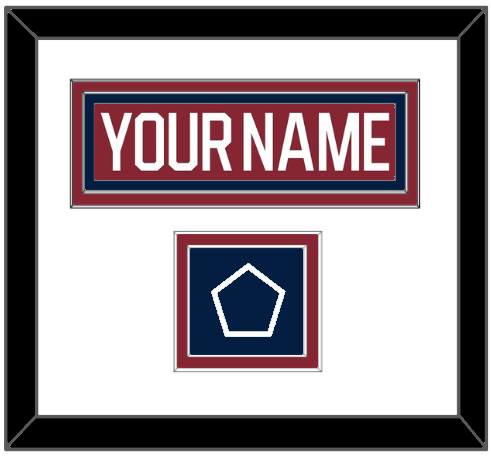 Washington 2015 Winter Classic Garnet Jersey Nameplate With Jersey Game Patch. Double Mat Cut: White Mat Over A Garnet Mat With Red Nameplate & Patch Mounted On A Blue Mat. Black Frame.