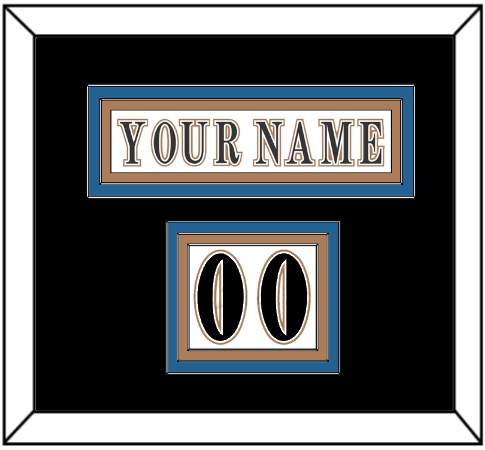 Washington Home White Jersey (1995 Through 2007) Nameplate & Numbers From Shoulder - The Nameplate Is Double Mat Cut: Black Mat Over A Blue Mat. White Nameplate Mounted On Bronze Mat. To Match The Jersey, The Numbers Are Triple Mat Cut: Black Mat Over A Blue Mat Over A Bronze Mat. Black Numbers Mounted On A White Mat. White Frame.
