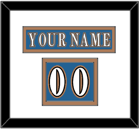 Washington Road Blue Jersey (1995 Through 2000) Nameplate & Numbers From Shoulder - The Nameplate Is Single Mat Cut: Blue Nameplate Mounted On Bronze Mat. To Match The Jersey, The Numbers Are Double Mat Cut: White Mat Over A Bronze Mat. White Numbers Mounted On A Blue Mat. Black Frame.