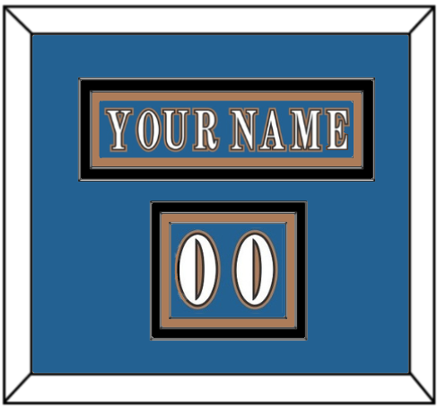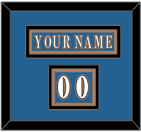 Washington Road Blue Jersey (1995 Through 2000) Nameplate & Numbers From Shoulder - The Nameplate Is Double Mat Cut:  Blue Mat Over A Black Mat.  Blue Nameplate Mounted On Bronze Mat.  To Match The Jersey, The Numbers Are Triple Mat Cut: Blue Mat Over A Black Mat Over A Bronze Mat.   White Numbers Mounted On A Blue Mat.  Black Or White Frame.