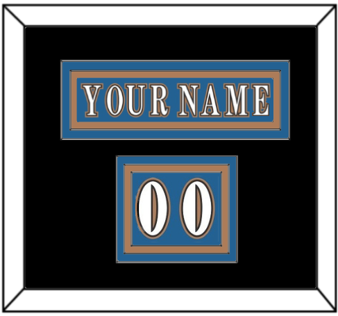 Washington Road Blue Jersey (1995 Through 2000) Nameplate & Numbers From Shoulder - The Nameplate Is Double Mat Cut: Black Mat Over A Blue Mat. Blue Nameplate Mounted On Bronze Mat. To Match The Jersey, The Numbers Are Triple Mat Cut: Black Mat Over A Blue Mat Over A Bronze Mat. White Numbers Mounted On A Blue Mat. White Frame.