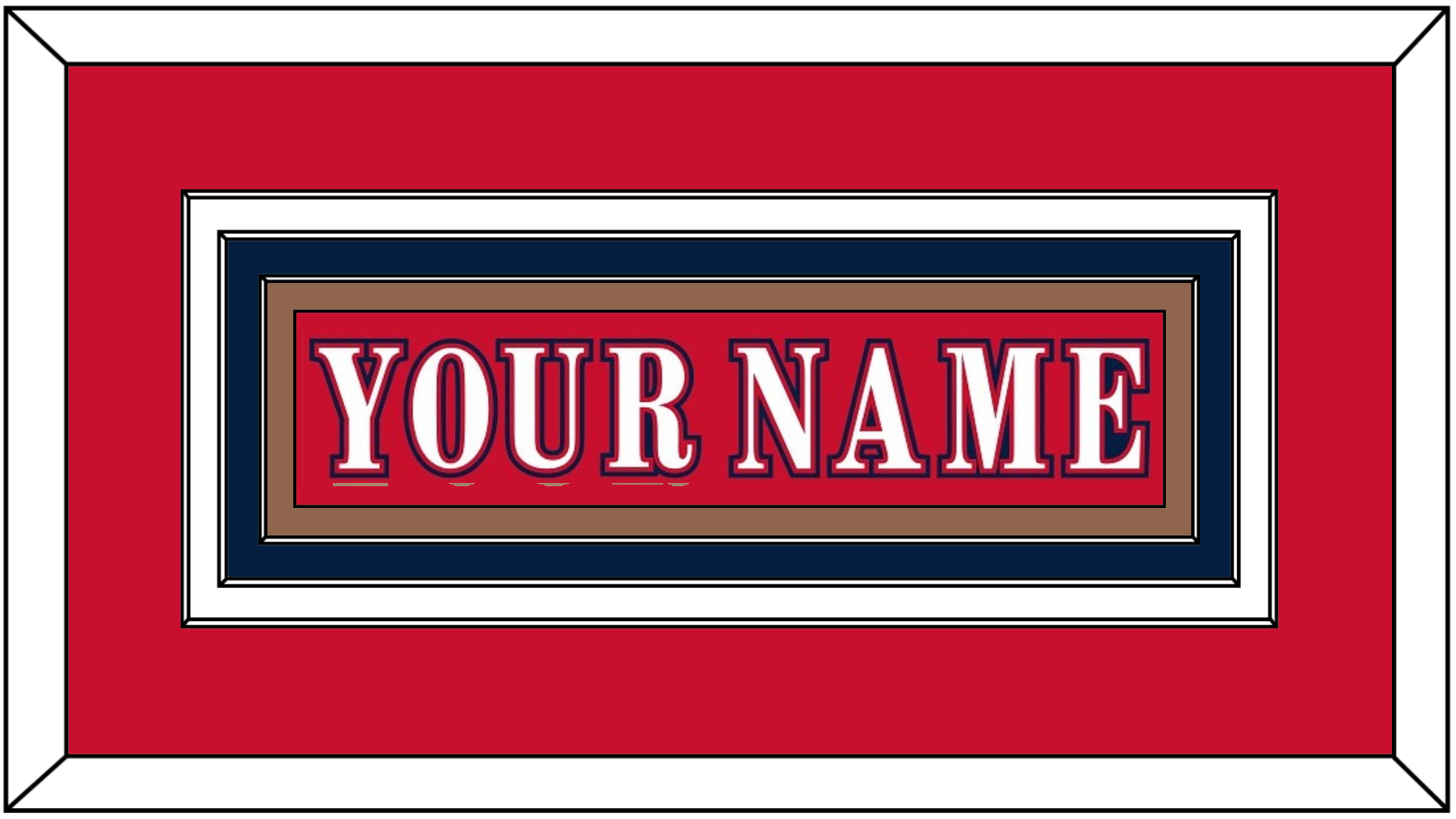 Washington Reverse Retro Red Jersey (2020 Through 2021) Nameplate. Triple Mat: Red Mat Over A White Mat Over A Blue Mat. Red Nameplate Mounted On Bronze Mat. Black Or White Frame.
